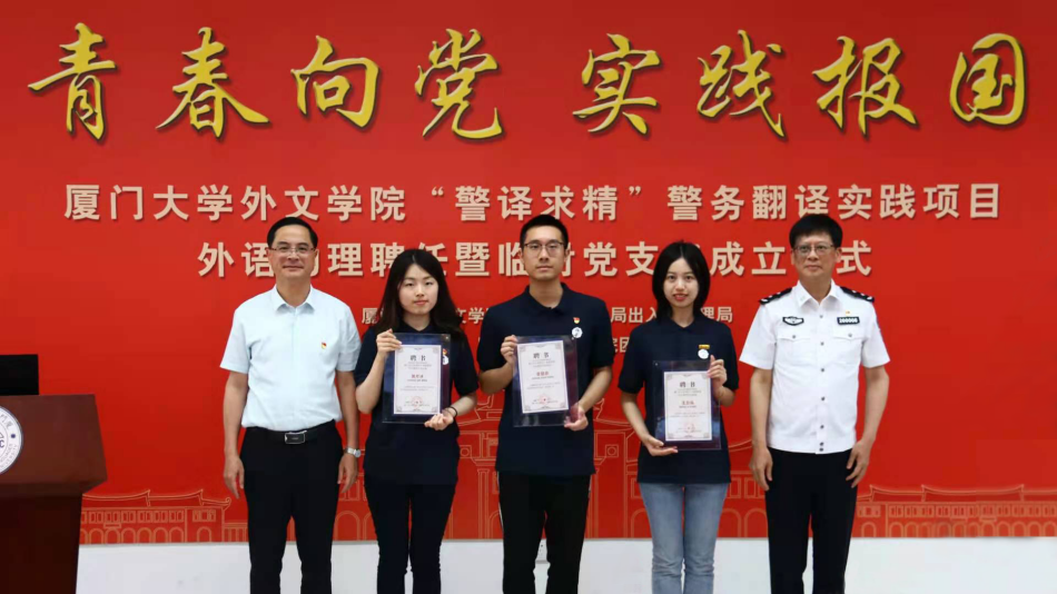 “青春向党 实践报国”厦门大学外文学院“警译求精”警务翻译实践项目外语助理聘任暨临时党支部成立仪式成功举办