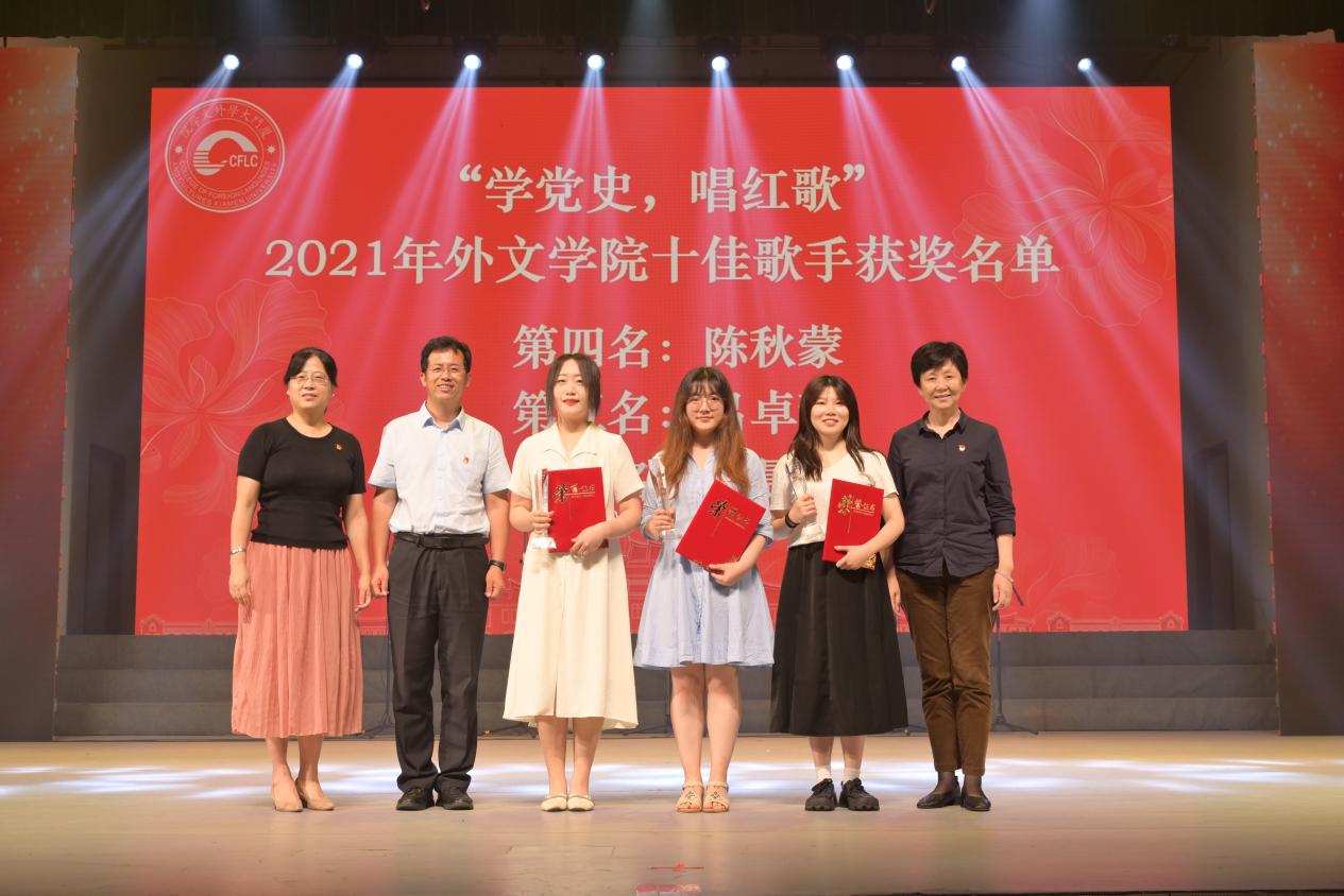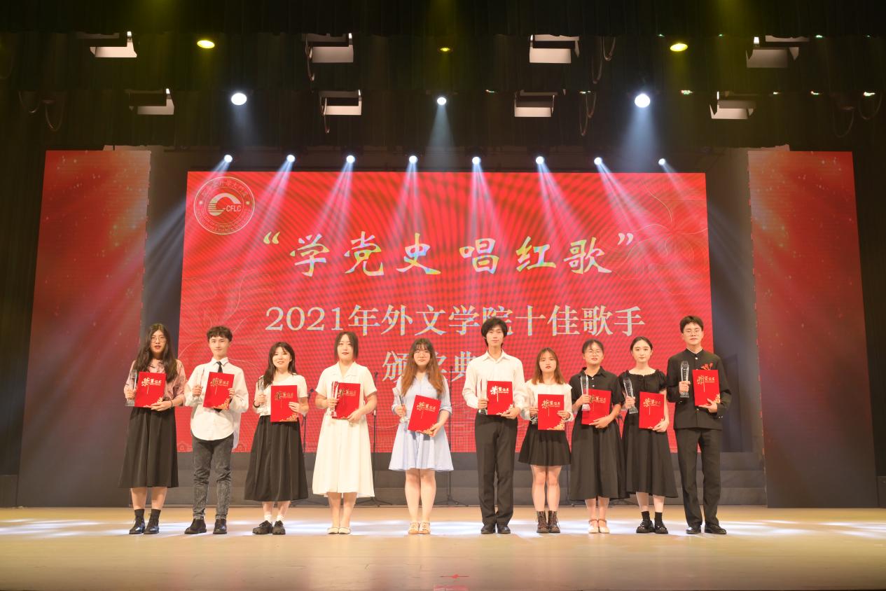 汇演现场还举行了“学党史 唱红歌”2021年外文学院十佳歌手颁奖仪式,莅临现场的领导嘉宾为十佳歌手颁发了证书和奖杯。