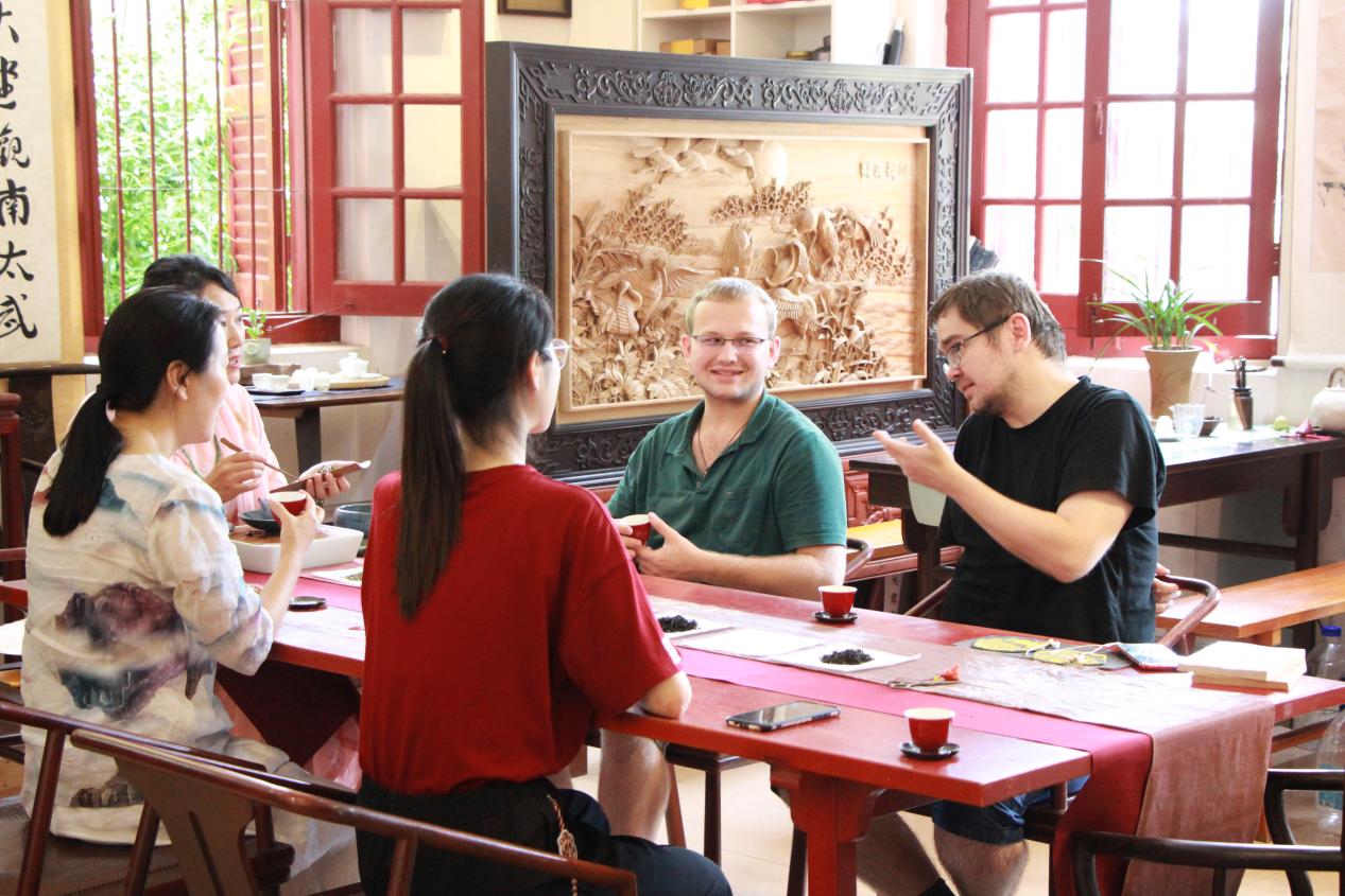最后,大家坐在一起讨论茶文化在世界的广泛传播及其对世界的影响,留学生们也纷纷发表自己本堂课的感受和对中国古典茶艺的理解。