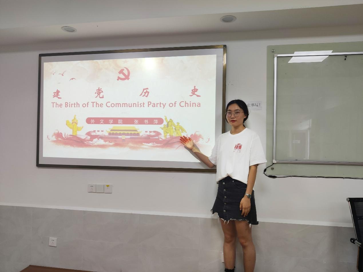 为庆祝中国共产党建党100周年,7月6日上午,我们实践队以“建党历史”为主题给留学生们上了一节课。根据参与课程的留学生的中文水平,主讲人张书萍同学决定全程使用英语对中国共产党的建党历史进行讲解。