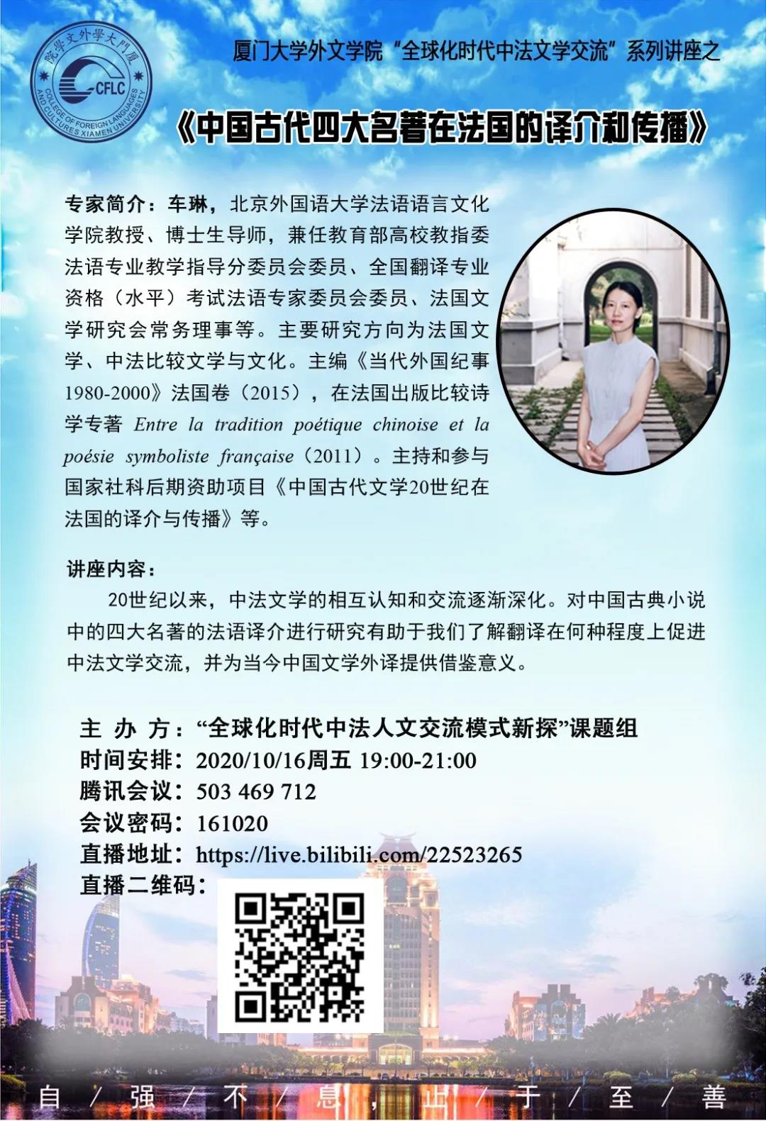 厦门大学外文学院“全球化时代中法文学交流” 系列讲座信息