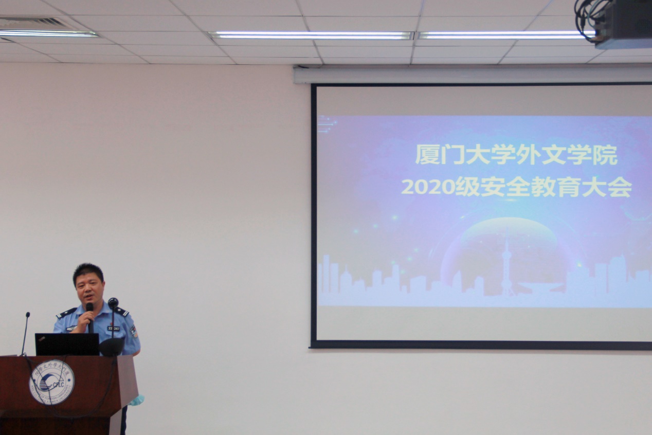 9月11日下午,厦门大学保卫处副处长涂建芳为新生们开展了一场生动具体的安全教育讲座。他围绕国家安全、人身和财产安全、交通安全、用电安全等各方面进行了详尽阐释,通过典型案例,向同学们强调了培养安全意识、注重自我保护的重要性。中国银行三家村支行的蒋惠经理则结合视频和实例,为新生们普及了防金融诈骗及经济安全方面的知识,提醒新生们远离金融陷阱。