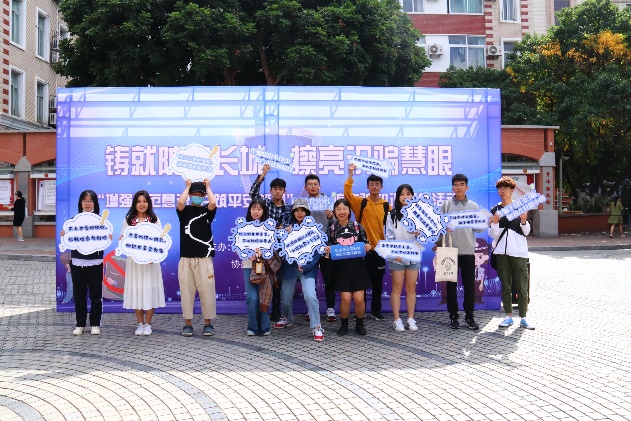 本次活动得到了全体外文学子的热情参与,现场气氛热烈活跃。除参加丰富多彩的游戏环节以外,同学们还通过扫描二维码的形式进行线上安全教育答题,巩固防诈骗知识;也有不少同学在防诈骗知识宣传咨询点领取宣传单,认真学习了解新型诈骗的多种形式,努力练就“火眼金睛”。此外,同学们还纷纷手举防诈骗宣传标语在背景板前合影留念,表达了认真学习防诈骗知识,提高自我防范意识的决心。