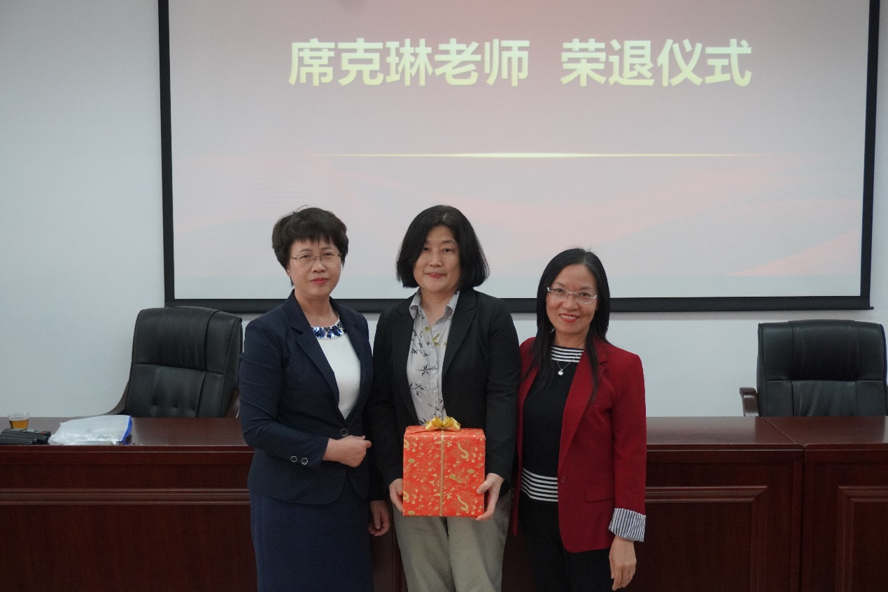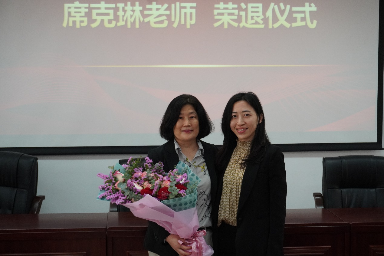 会上,为进一步加强对退休教师的关心、关怀,增强荣誉感和归属感,激励新一代青年教师接续奋斗建功立业新时代,学院为鲁京明、席克琳两位老师举办了教师荣退仪式。外文学院院长陈菁、副院长李美华,青年教师代表黄荍笛、刘浩然分别为两位荣退老师送上鲜花和祝福。