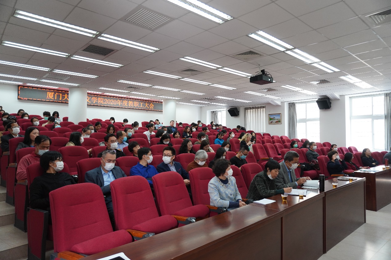 春来扬帆正当时,乘势而上谋新篇。2021年是“十四五”的开局之年,也是厦大迎来百年华诞的特别之年。为确保新学期各项重点工作正常有序开展,外文学院在德贞楼112报告厅和313会议室顺利召开2021春季学期开学大会和2020年度教职工大会,全体教职员工参加会议,会议由学院党委书记陈志伟主持。