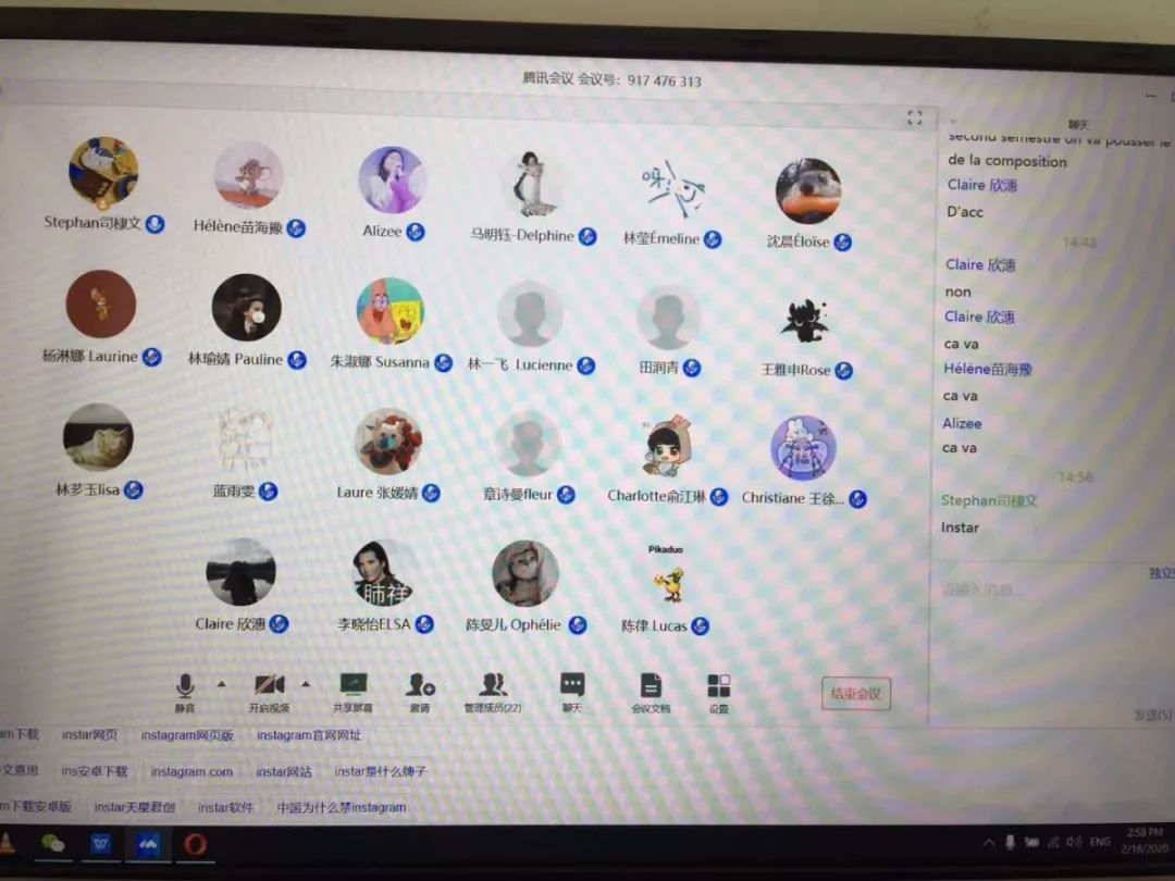 法语系有4位外教,3位外教还在海外。尽管有着7小时时差,线上授课我们准时“赴约”!在教育部“停课不停教不停学”精神指导下,法语系老师积极准备与外教密切沟通。帮助外教们做学校课程网络平台的建设、筛选优质慕课课程、建课程群等。现在外教们能较熟练的运用腾讯会议、QQ群等平台和同学们互动良好。