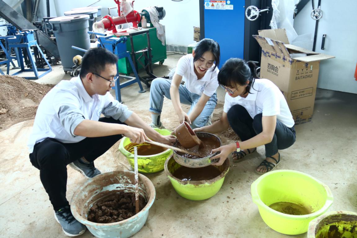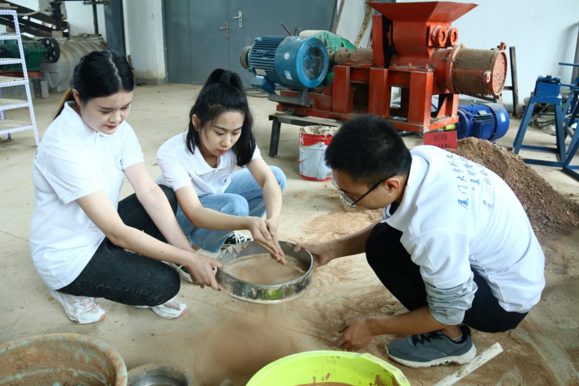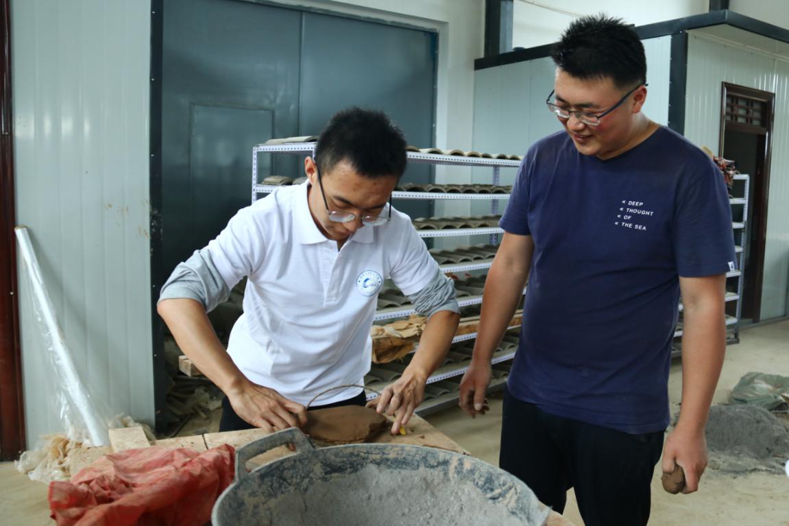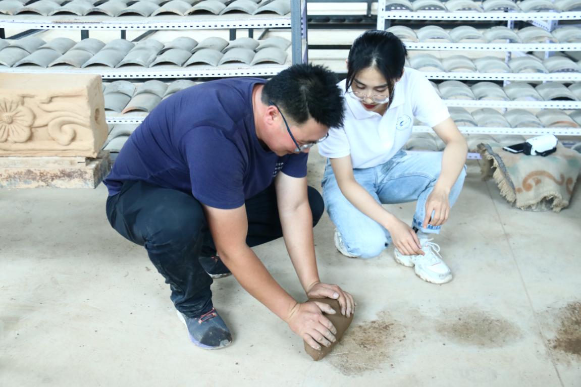 5日上午,实践队一行来到魏氏砖雕有限公司参与砖雕制作劳动。魏氏砖雕是国家级非物质文化遗产,经过百年的传承与发展,现已成为隆德县扶贫致富的排头兵。在第五代传承人魏亚龙的指导带领下,实践队员了解了“软雕”“硬雕”等制作工序,并进入扶贫车间,参与到筛土成泥、捣泥成质、摔泥入模、酿泥成形的劳动过程中。看着一个个带着复古花纹的瓦片在手中诞生,同学们满富成就感地说道“虽然我们不能像熟练的工人一样,在两分钟不到的时间里便制作出一片雕花精美的瓦片,但也领会到劳动者的‘工匠精神’了!”实践队员们深刻地体会到了劳动创造的幸福感,认识到“出力流汗”才能创造价值,“动手动脑”方能实现价值。