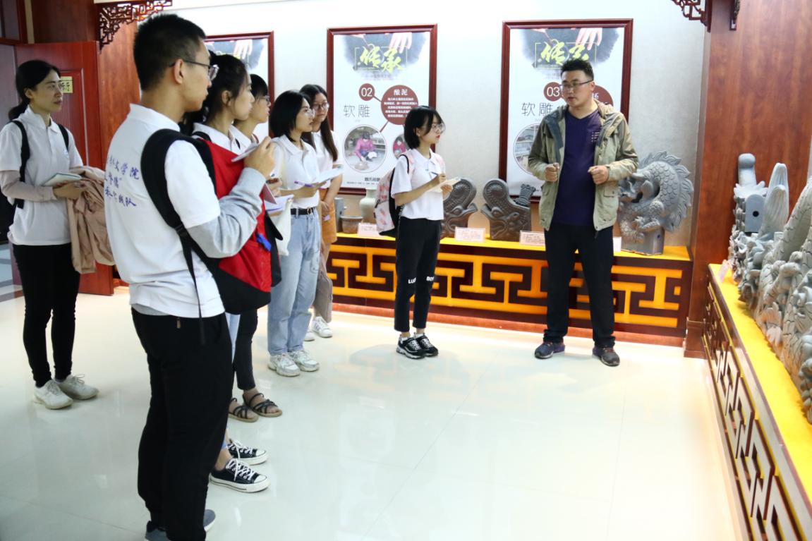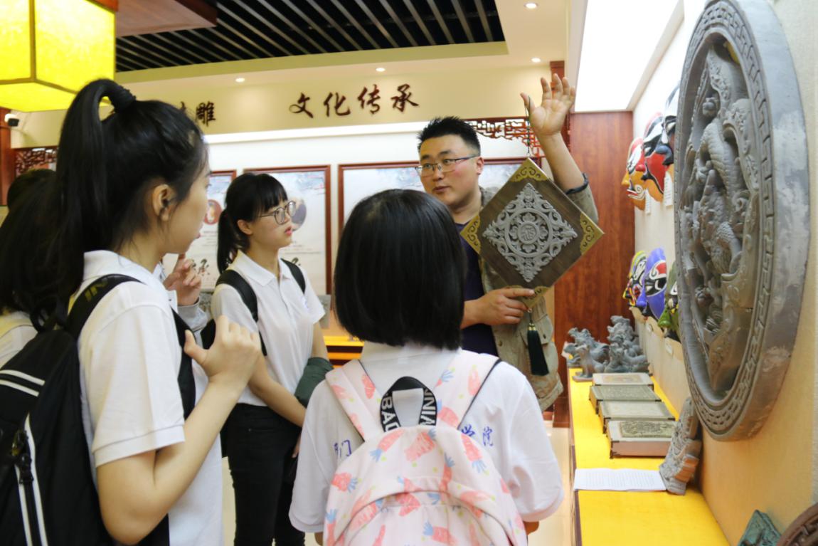 魏氏砖雕传承人向实践队员介绍砖雕工艺