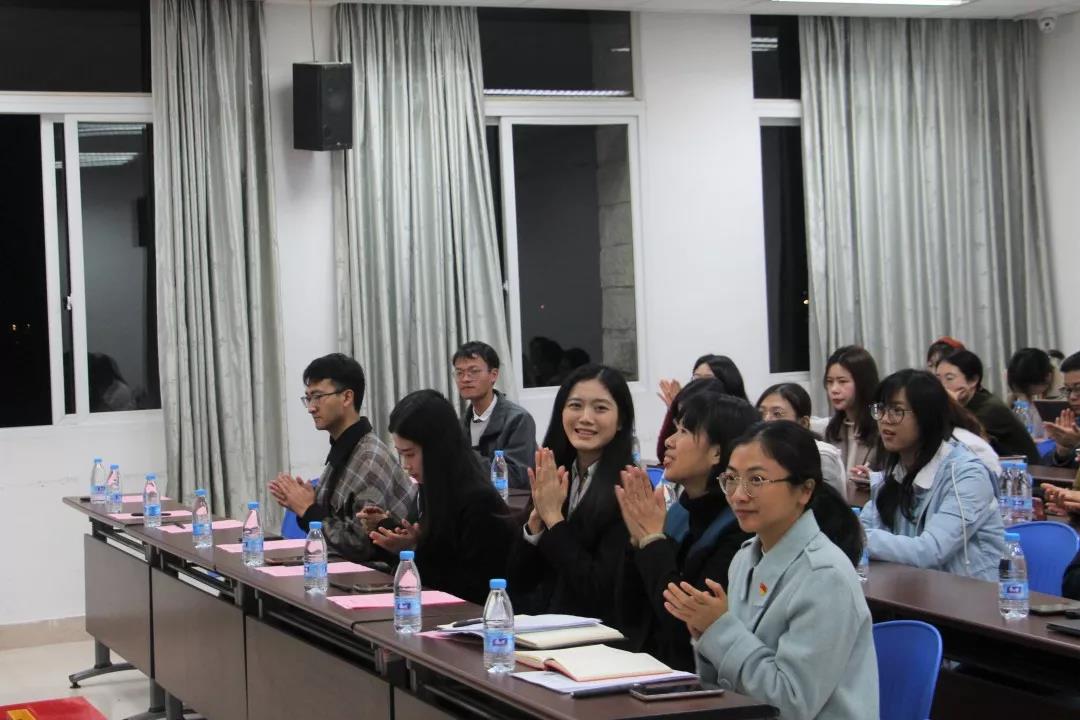 12月28日晚,厦门大学外文学院2019年研究生代表大会在德贞楼415报告厅顺利举行。外文学院党委副书记沈丽秀,团委副书记、研究生辅导员肖盈莅临本次大会。厦门大学第二十九届研究生会代表王嘉珺,人文学院等四个兄弟学院研究生会代表,学院学生会代表出席大会。大会由外文学院2018-2019学年研究生会代表黄心雨主持。