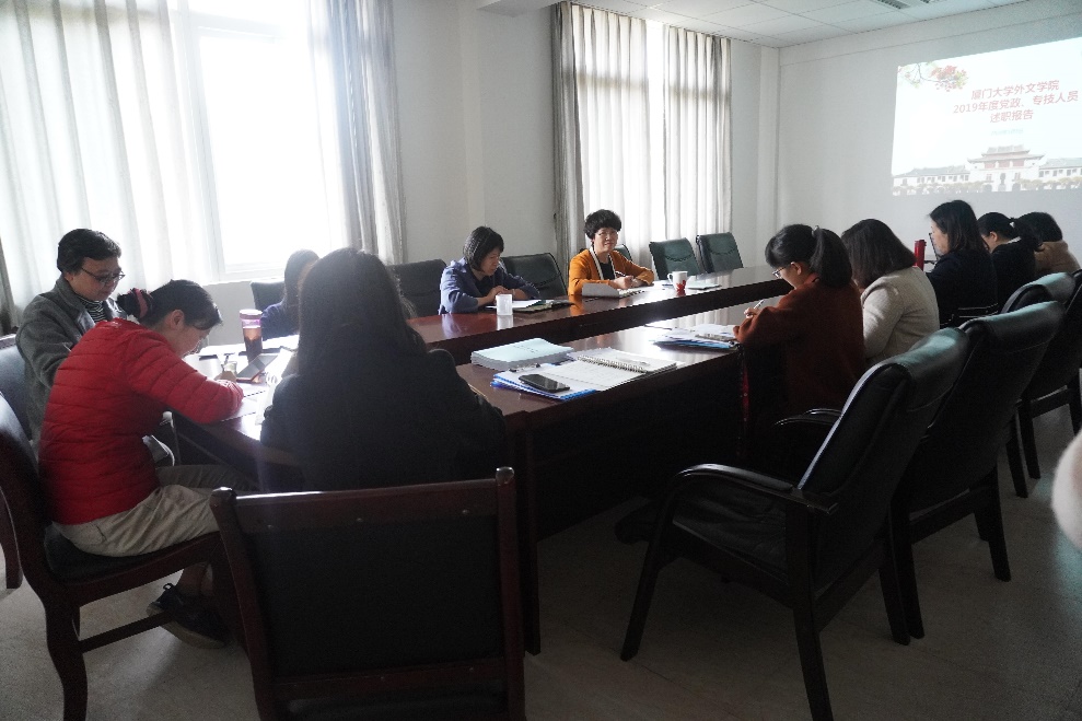 为推进学院各项工作稳步前进,明晰下一步工作目标。根据学校年度考核工作部署,1月9日,在德贞楼524会议室召开2019年度党政、专技人员述职报告会。院长陈菁、党委副书记沈丽秀、副院长李美华及全体党政、专技人员参加会议,会议由党委副书记沈丽秀主持。