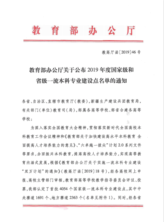 近日,教育部办公厅发布《教育部办公厅关于公布2019年度国家级和省级一流本科专业建设点名单的通知》(教高厅函〔2019〕46号),华体网英语专业入选国家级一流本科专业建设点。