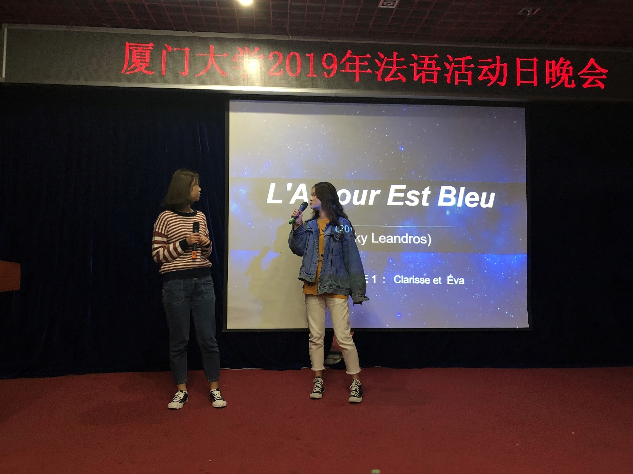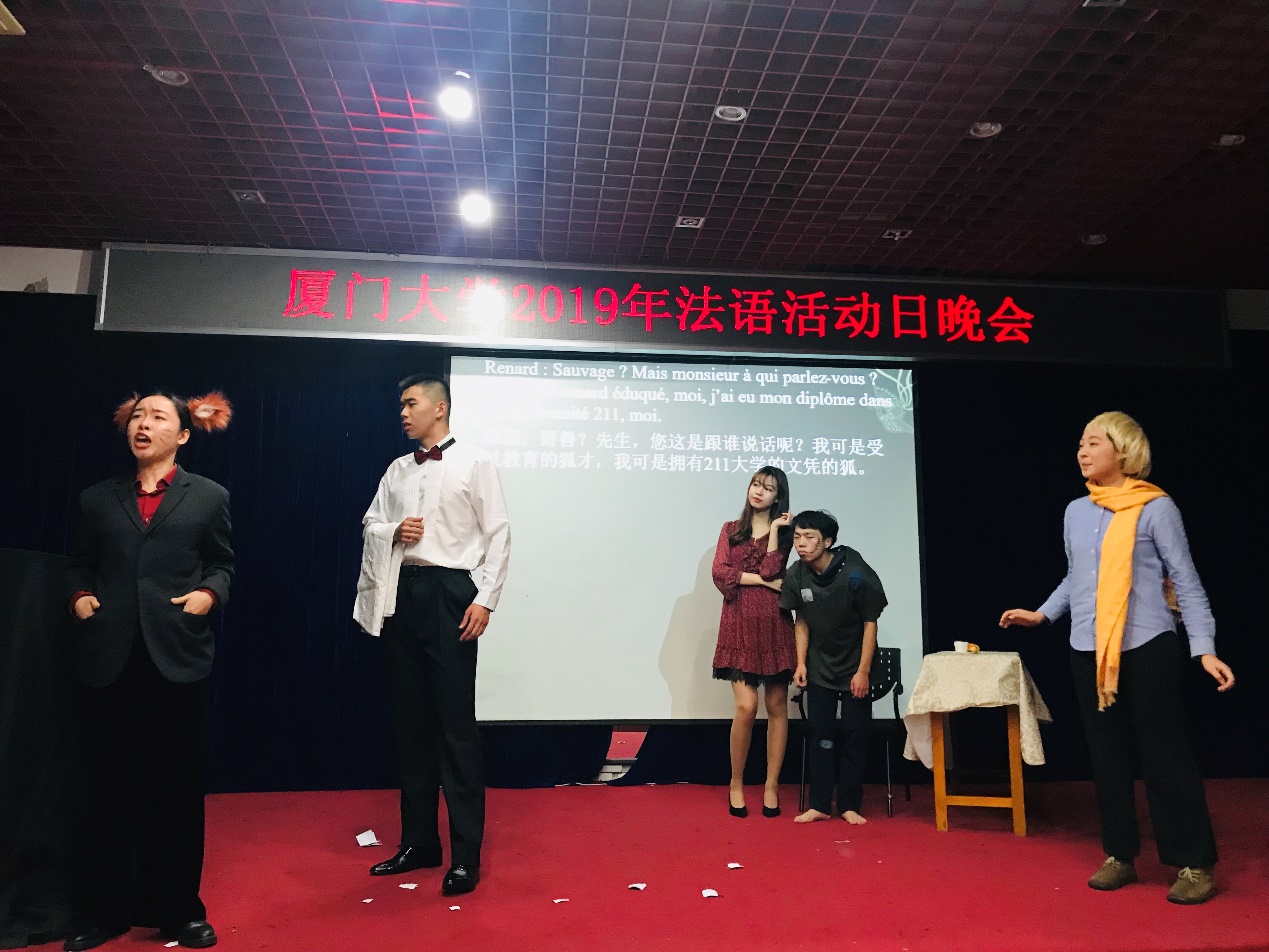 一年一度的法语活动月又如约而至,2019年4月1日,外籍教师Guillaume LABOURDETTE组织法语系师生在自钦楼多功能厅举办厦门大学法语活动日晚会——“厦大法语之夜”。本场晚会由2018级研究生武瑶、钱雅蓉两位同学主持,2018级研究生沈洁欣同学主持电影配音比赛并做部分口译。