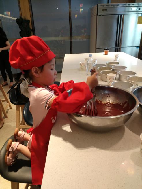 俗话说得好,“人多力量大”。转眼间,蛋糕胚就做好了,入器皿,送烤箱。在等待见证奇迹的时间里,小朋友们竞相展示才艺。有的表演大提琴独奏,有的化身成故事大王,博得一众喝彩与赞誉。