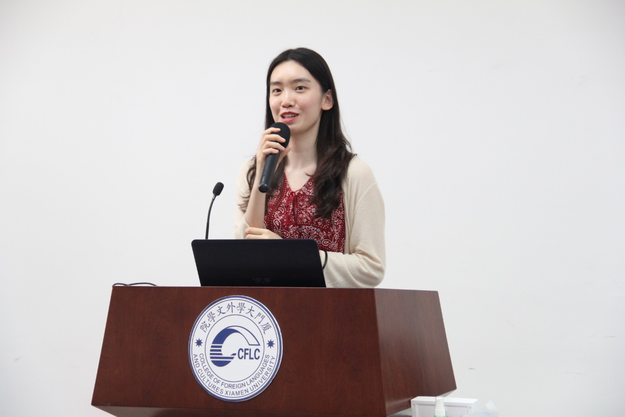 最后一位上台分享的是2019年中国日报社“21世纪·可口可乐杯”全国英语演讲比赛季军、厦门大学“文庆奖学金”获得者袁嘉茵同学。她凭借扎实的专业能力稳居专业第一,并在国内外演讲比赛中多次斩获大奖。在分享中,她以“信与不信、敢与不敢、想与不想”为题,分享了自己的独特思考。她表示,“不要问社会可以为你做什么,而要问问你自己可以为你做什么?一屋不扫何以扫天下。我们首先需要的是实现自我管理和自我培养,让自己成为一个有能力的人。”“去哪里、走多远、成为谁”,袁嘉茵结合学习生活的亲身经历给出了自己的答案,鼓励在场同学要始终坚守内心、不断挑战自我,成为更好的自己。