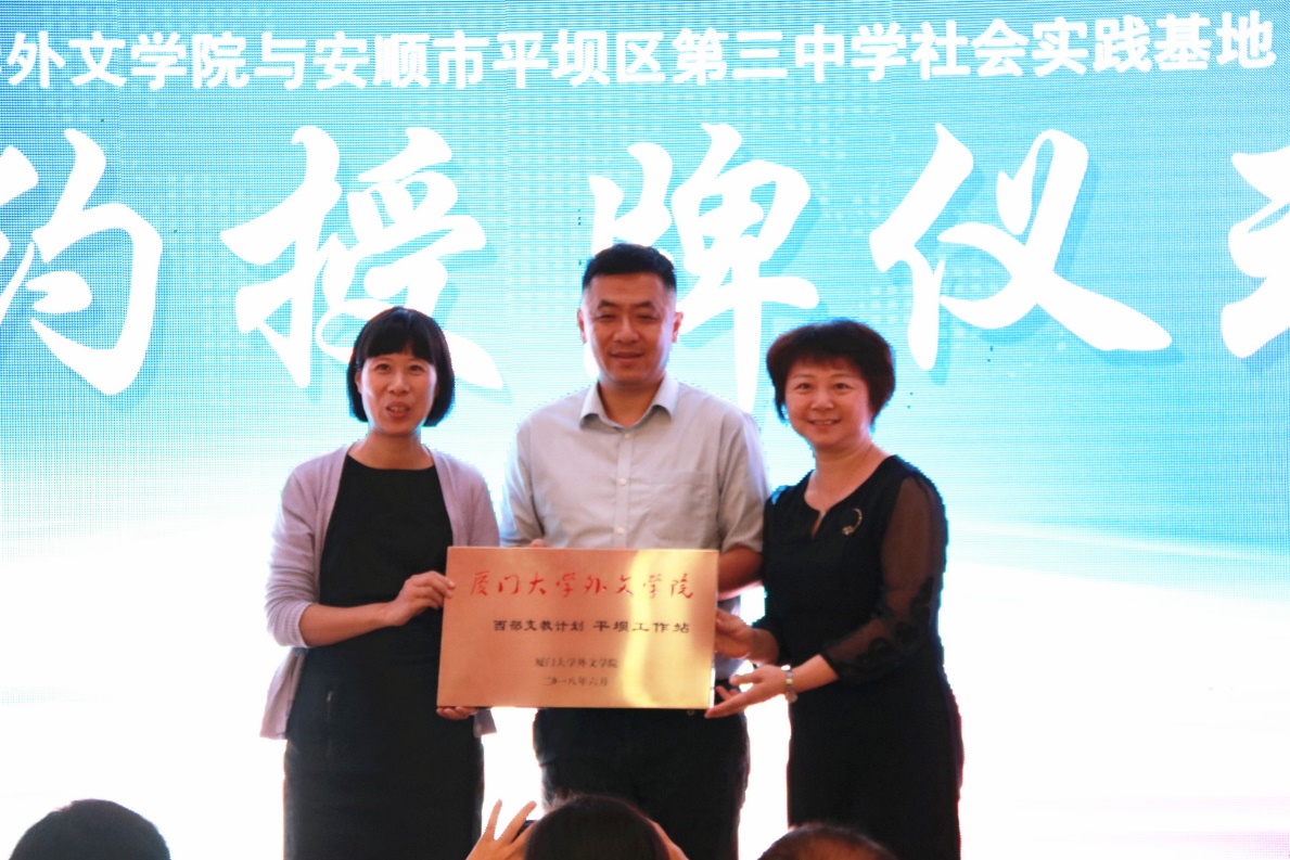 沈丽秀副书记、徐琪副院长授“厦门大学外文学院西部支教计划平坝区工作站”牌