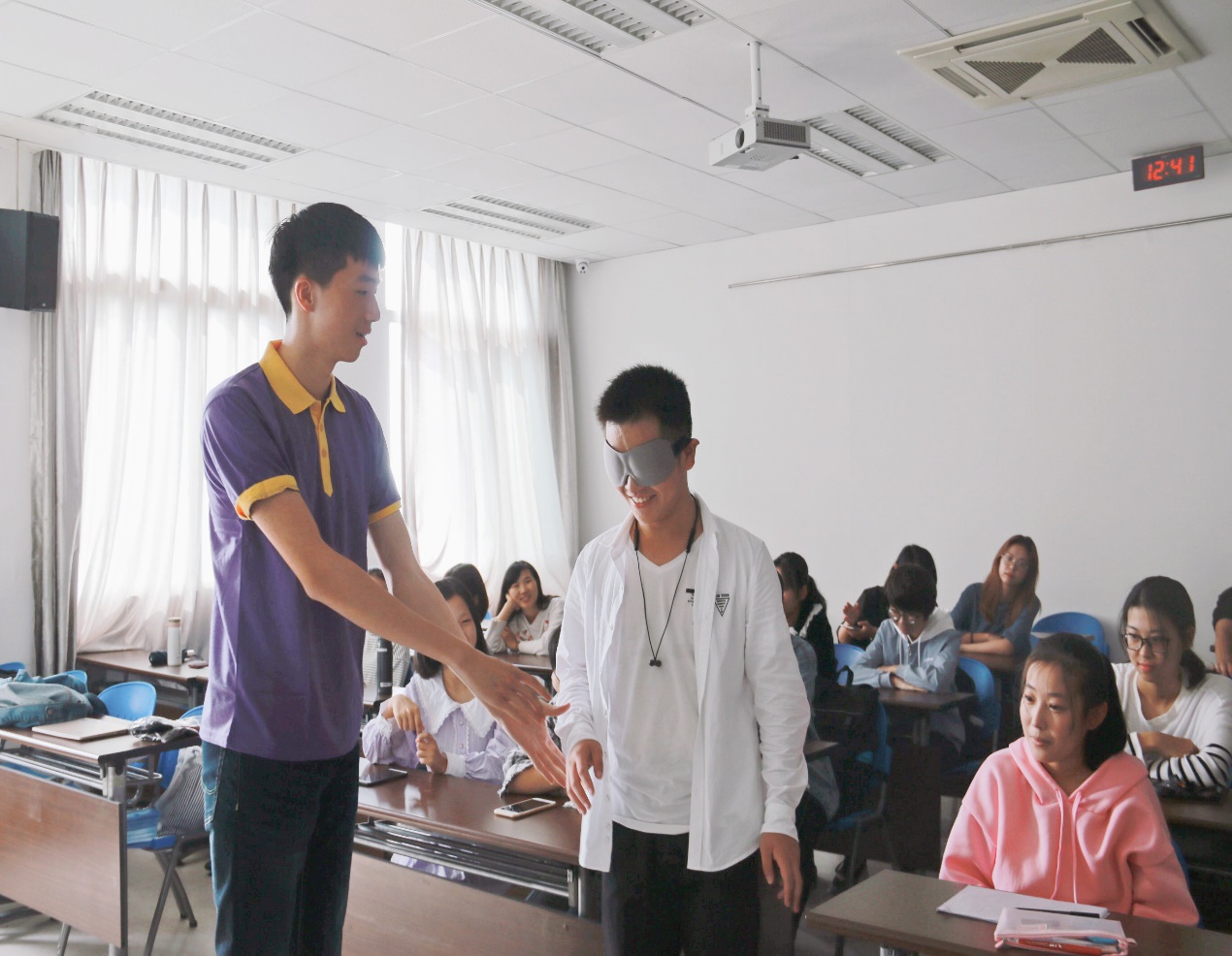 活动开始,志愿者为参与体验的同学戴上眼罩,通过拿取物品、上下楼梯等情景模拟,让他们体验盲胞的生活状态,感受他们生活的不易。“对于我们普通人来说,这些都是轻而易举的事情,而对于盲胞来说却可能成为他们难以逾越的一道鸿沟。”一位同学在体验活动后如是说。