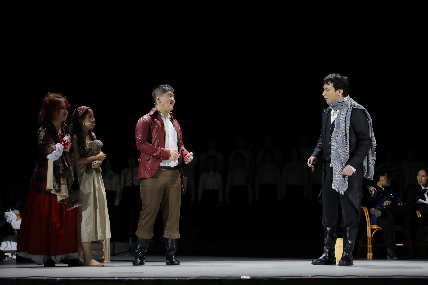演出过程中,演员们以饱含深情的歌声将性格迥异的人物演绎得惟妙惟肖。值得一提的是,剧中小珂赛特和流浪儿加弗洛什两个角色由同一位女演员饰演,她对两个角色截然不同的性格把握得当、游刃有余,展现出精湛的演技以及对角色的深入理解。