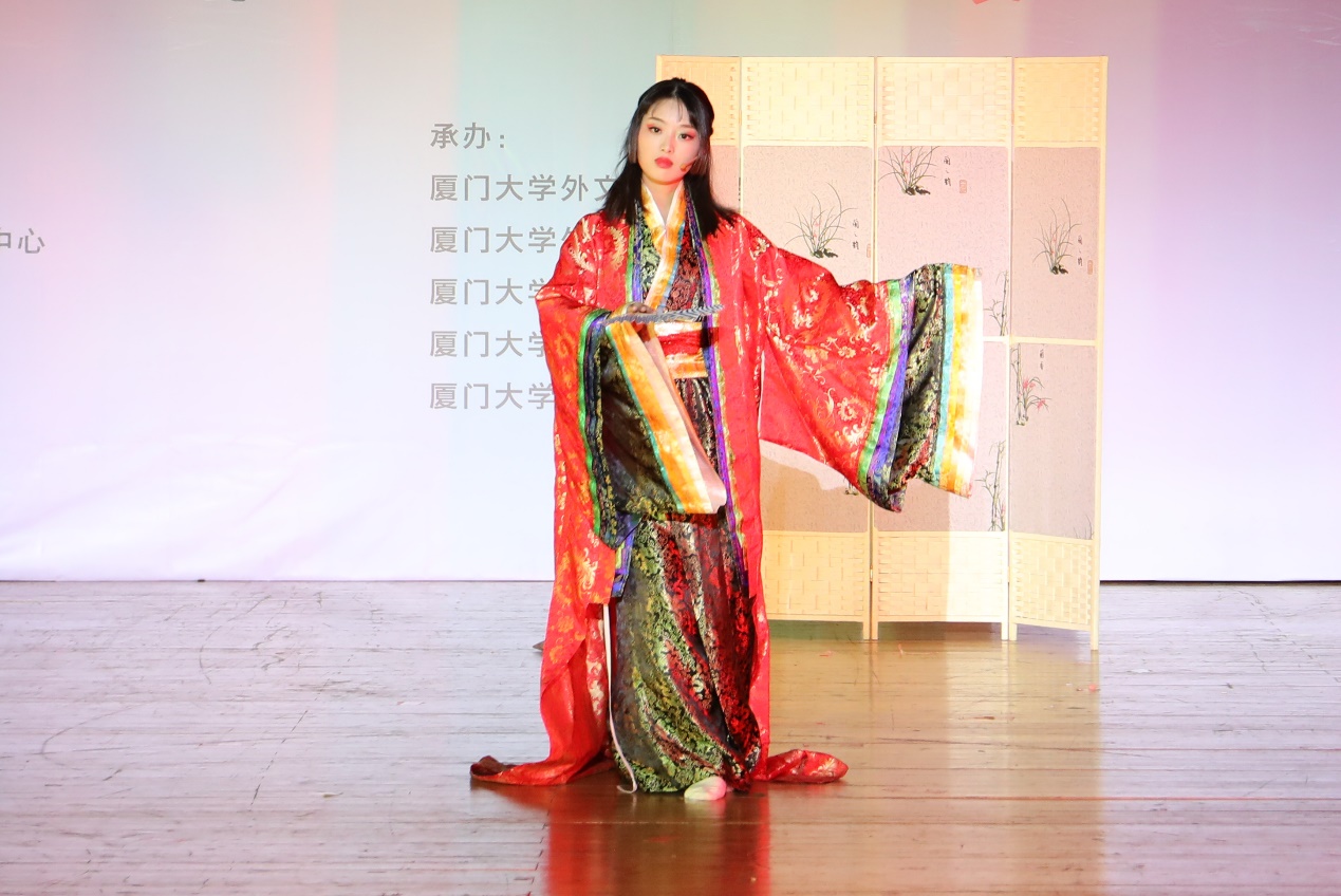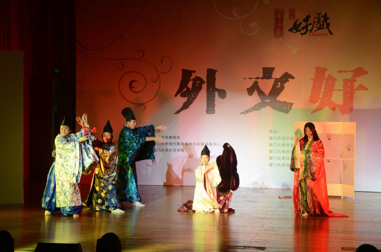 12月8日晚,厦门大学第三届“外文好戏”收官之作——由日语、俄语、德语联袂演绎的“三国演艺”于厦门大学科学艺术中心音乐厅上演。本场演出依次演绎了日语剧目《辉夜姬》、俄语剧目《外套》、德语剧目《老妇还乡》,为广大师生呈现了一场高品质的视听盛宴。南京大学法语系教授、外文学院讲座教授刘成富,外文学院党委书记陈志伟,副院长徐琪,欧洲语言文学系主任顾鸿飞、副主任方厚升等嘉宾领导和老师莅临现场观看演出。本场演出由2016级英语专业本科生刘信和2018级日语专业本科生王嘉仪主持。