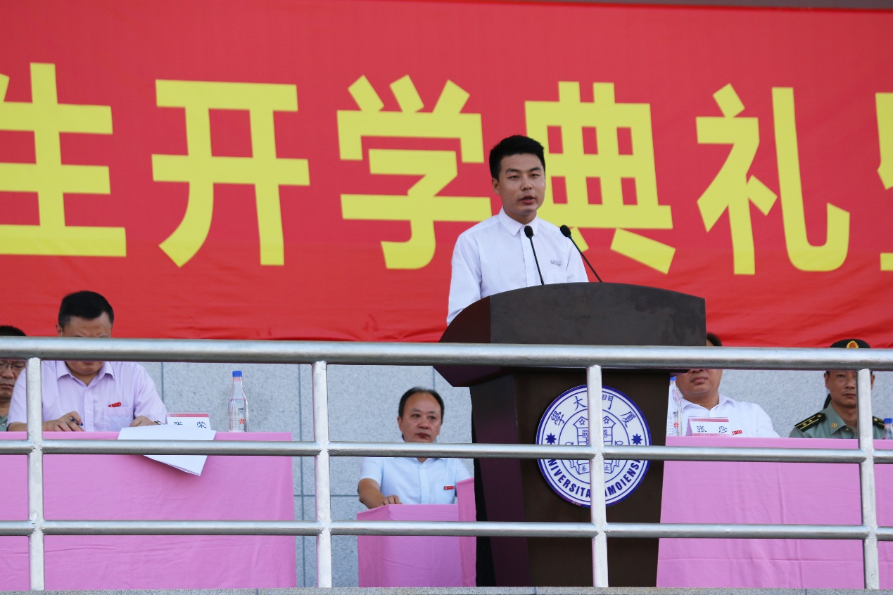 紧接着,教师代表和老生代表依次发言。教师代表王大志老师在发言中表达了对新生们的殷切期待,希望大家能在大学就读期间,转变学习观念,化被动学习为主动学习,时刻保持好奇心、进取心,为祖国创新事业贡献力量。老生代表庞靖龙同学对2017级本科新生提出“感恩、励志、坚持、实践”的八字期望,同时也祝愿新生们能够在厦门大学拥有一段美好的求学时光。