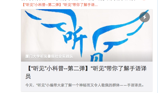 除了发放问卷进行调研外,实践队还以微博为平台进行有关聋人、手语及手语译员的科普。8月1日,微博文章《“听见”小科普第二弹——“听见”带你了解手语译员》一文得到了中国聋人网等官方微博的转发,得以让更多的人了解到手语译员这一群体。