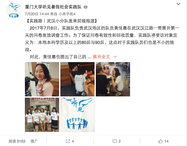 “听见”实践队微博正文截图