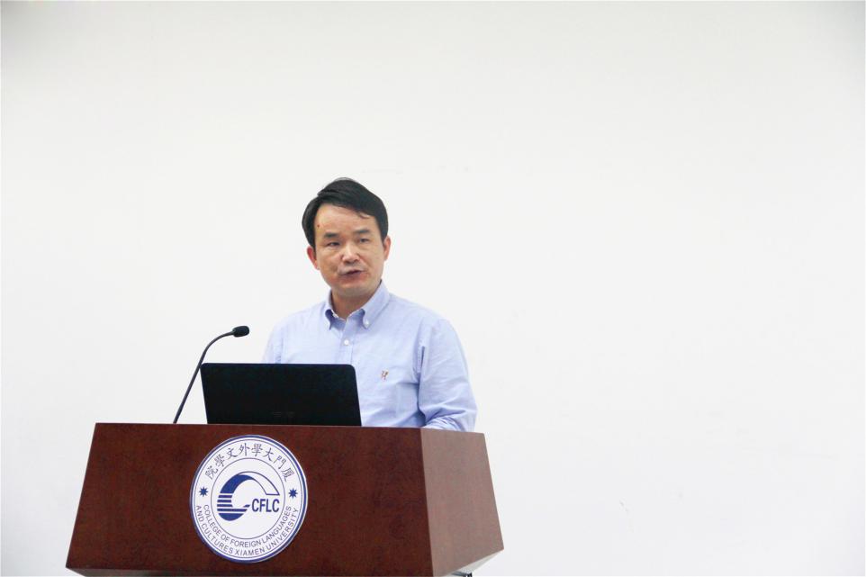 随后,厦门大学外文学院张龙海院长上台致辞。张院长指出,虽然外文学院已经成功举办了三届“博学杯”比赛,但今年是首次邀请省内其他高校共同参与比赛并得到了外研社的大力支持。他衷心希望本次邀请赛对培养英语专业人才、增进各高校间的交流与合作起到积极促进作用。