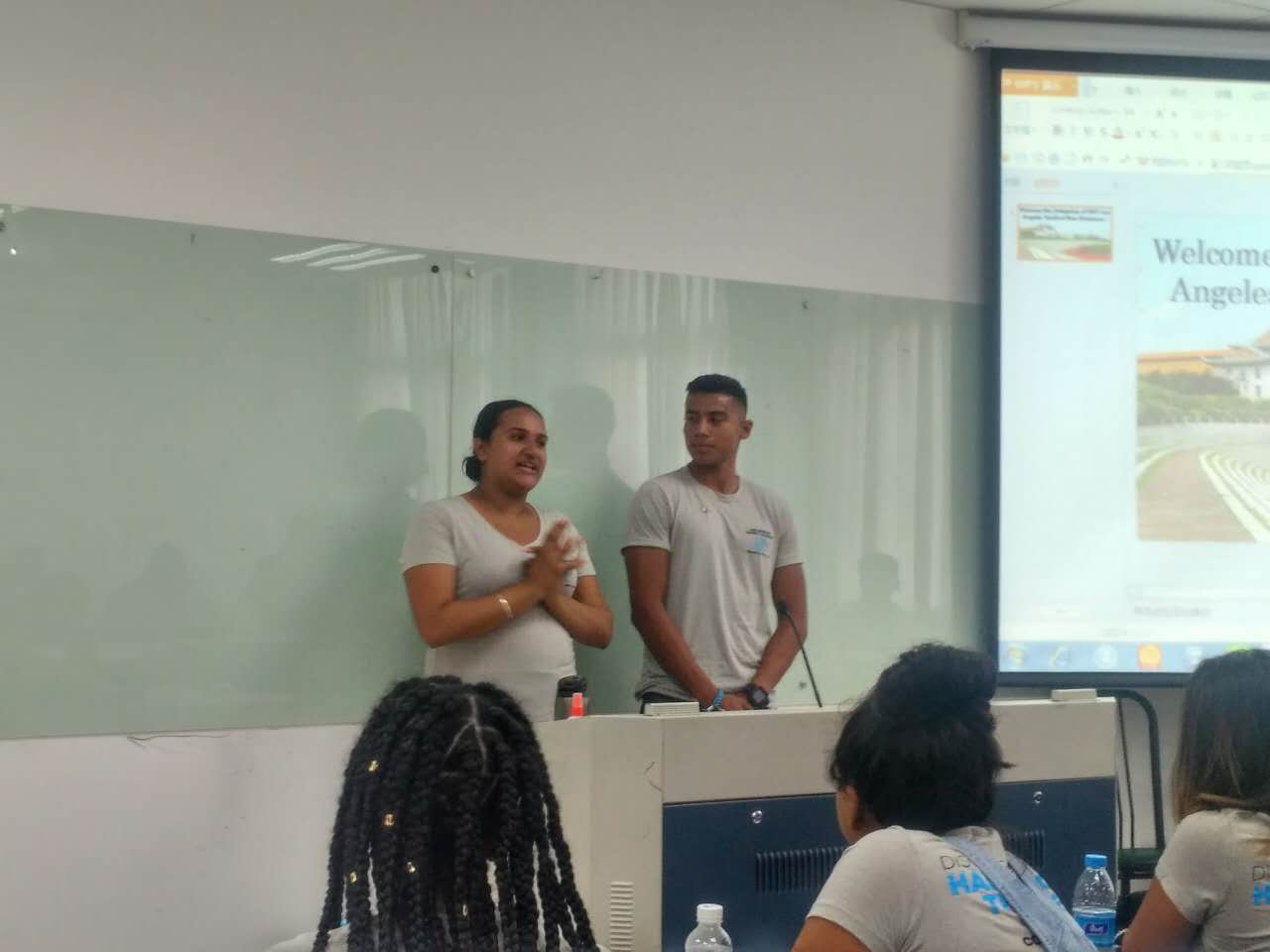首先,来自洛杉矶的老师和同学一起观看了厦门大学的介绍影片,影片图文并茂地介绍了厦门大学的历史和发展,同学和老师们都欣赏得十分认真。接下来,来自洛杉矶的两位学生代表上台向大家介绍了自己家乡洛杉矶的风土人情,其中着重从气候、城市环境、文化氛围、流行元素、对青少年发展的影响、生态环境等方面介绍了洛杉矶这座魅力之城、理想之都,幽默、有趣又详细的介绍让在场的中国学生们心生向往,也博得了大家一阵阵的掌声和笑声。