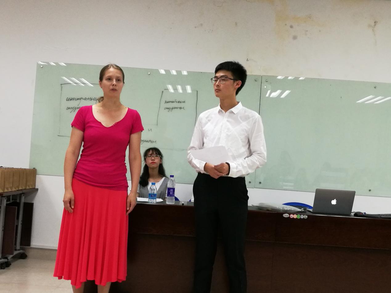 节目表演环节,大学生们再次踊跃展示了各自的风采。中方学生马权政与俄罗斯学生Минеева Светлана共同朗诵白居易的诗歌《问友》。