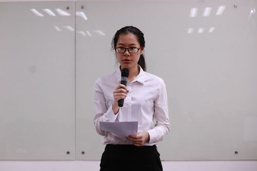 随后,外文学院2017-2018学年本科生团总支书记钟予晴同学、学生会主席方晨晟同学、宣传中心主任王乃加同学依次上台发言。钟予晴同学以“有序、创新、协作”三个关键词展望了未来一年的工作,提出了完善规章制度、创新活动形式、加强团队协作的要求,表达了希望在前一年的经验的指导下,本科生团总支工作能够在新的一年更上一层楼的期待。方晨晟同学以“外柔内刚,文圆质方,学贯中西,院甲南强”的外文精神为引,对自己与新一届学生干部们提出具体要求,希望大家在未来一年工作中努力做到“承载”、“承担”与“承受”。王乃加同学在发言中指出,2017-2018学年将是宣中承前启后、开拓创新的一年,希望新一届外文宣中人能做到不断突破进取、树立大局意识、努力精进自身宣传技能,不惧挑战、厚积薄发,在接下来的一学年中交出一份令人满意的答卷。