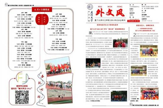 11月4日至5日,厦门大学第51届学生田径运动会在厦门大学翔安校区一期运动场上隆重举行。赛场上,外文健儿们英姿飒爽、风华正茂,代表学院一次次征战赛场;他们不仅证明了自己,也为学院争得了荣誉。经过两天的激烈角逐,最终华体网获得总积分2741分,比去年总分提高了200分,充分体现了外文体育事业的蒸蒸日上。同时,凭借华体网运动员拼搏不息的精神和傲人的成绩、工作人员事无巨细的后勤工作,以及开幕入场式的精彩展现、精致的运动会特刊制作与宣传、广播稿的高质量海投,华体网在本届校运会上的突出表现受到了肯定,荣获“体育道德风尚奖”。