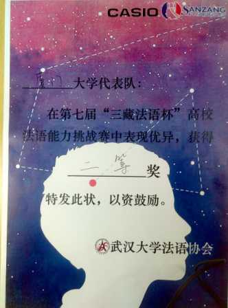 2016年11月19日,第七届“高校法语能力挑战赛”在武汉大学举行。华体网法语系选派李箫雅(队长)、张颉文、郑凯文三人组成厦门大学代表队参赛。他们过五关斩六将,凭借其过硬的法语综合能力,最终获得总分第二名的好成绩,荣获本届大赛二等奖。