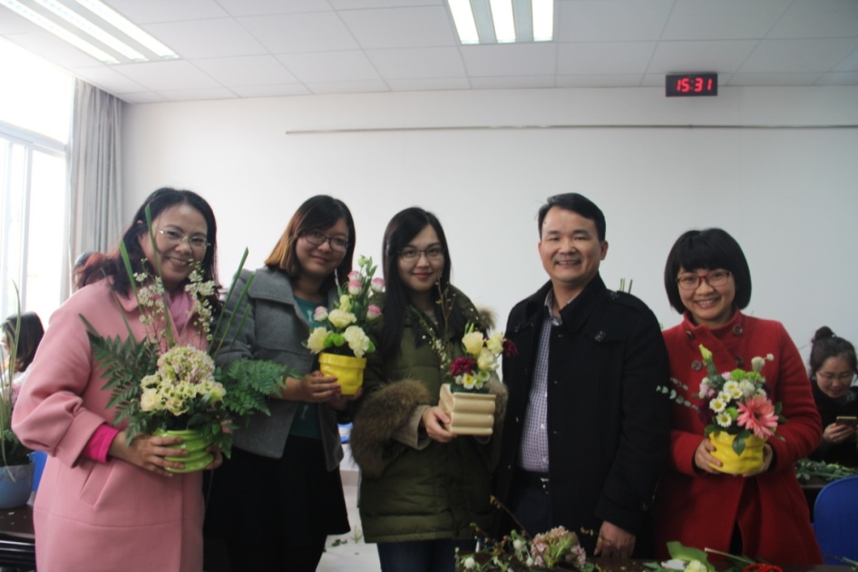 诚如活动宣传所言:几枝花?一抹绿?怡时光,此次插花DIY活动让参与者充分感受到指尖上的快乐,一起享受一段惬意的午后时光,不仅向女教工们传递了温馨的节日祝福,更陶冶了大家的情操,丰富了大家的业余生活,营造出快乐、轻松、和谐、充满活力的工作生活氛围,为女教工的美丽心情再添彩。