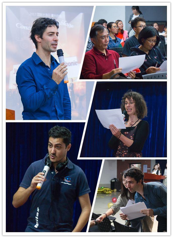 2017年4月15日晚上7点30分,伴随着轻快优雅的香颂,由厦门大学教务处及厦门大学外文学院主办、厦门大学外文学院法语语言文学系承办的“Journée de la Francophonie à Xiada”(国际法语日厦大场)晚会拉开帷幕,开启了法语语言文化交流碰撞的奇妙夜晚。讲座教授余中先老师、系副主任鲁京明老师、外籍教师Guillaume LABOURDETTE, Nathalie SCHWAI, Boris CORFU以及众多外国友人、同学们应邀至自钦楼二楼多功能厅参加晚会。歌声悠扬,五彩气球装点着浪漫的法兰西之夜。作为主持人的外籍教师Guillaume LABOURDETTE以风趣幽默的话语宣布晚会正式开始,为观众献上一场关于法兰西风情的视听盛宴。带来开场秀的是外籍教师Nathalie SCHWAI和法语系本科三年级学生?velyne(沈洁欣),她们携手合唱的法国歌曲《La vie en rose》(《玫瑰人生》)以及具有浓浓中国特色的名曲《茉莉花》惊艳全场,完美展现出中法文化碰撞的风采。紧接着,参与配音比赛的同学展示了配音秀,他们近乎原声、标准动听的语音语调感染力极高,令全场掌声不止。这方作罢,香颂再次响起。来自本科二年级的Jérémy(李生威)和Juliane(吴滢)分别演唱了《Carmen》(卡门)和《Le premier jour》(第一天),又一次将全场气氛推向高潮。