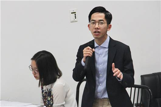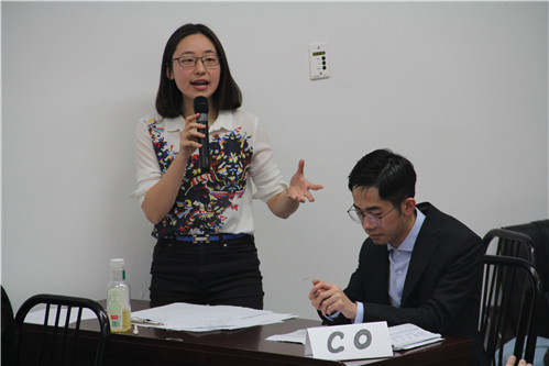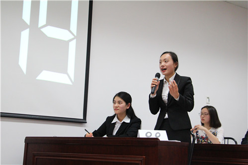八名选手在辩论中各显风采,或有条不紊地阐述自己的观点,或严谨细致地向对方进行反驳和质询,出色的现场表现展示了他们深厚的英语功底和优秀的思辨能力。双方辩手们你一言我一语,不囿于用平实的语言论述观点,更通过实例和名句加以佐证,表达了自己观点的同时更进一步配合了己方辩友的阐述。他们有的沉着冷静,有的幽默风趣,每一位选手的发言都博得了满堂喝彩。选手之一、外文学院2015级本科生陈倩同学在比赛结束后意犹未尽地表示:“不管最后结果如何,今天在比赛现场,我领略了对手的风采,也感受到来自不同学院的同学间思想的碰撞,我觉得收获很大。与其说这是一场比赛,倒不如说是一场大家风采的展示。”另一位选手、2013级本科生薛静怡同学则感慨道:“每一次辩论都是一种开拓思维的方式,让我打破固定的思维模式。我喜欢这样挑战对原来世界的定义。这次参加辩论赛,我也感觉再一次开拓了我的视野,收获了很多。”