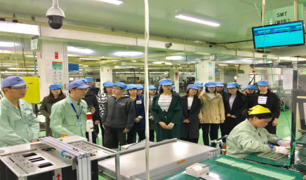 在企业员工的带领下参观生产车间