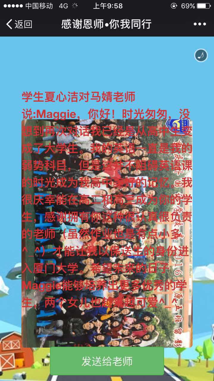其他队员们则选择了给老师发送电子贺卡的方式来表达自己的感恩之情。收到电子贺卡后,老师们非常高兴,并也和同学们聊起了天,关心大家现在的学习和生活。