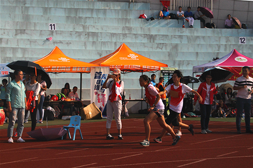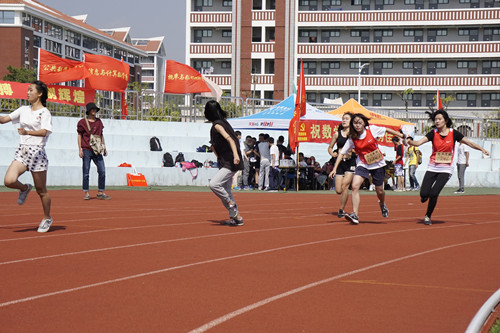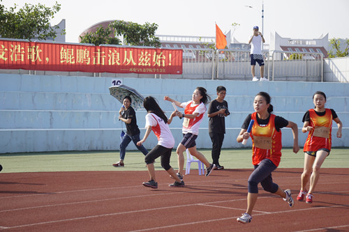在参加4×100米接力赛之前,刘茜和侯林丽还参加了本科生女子组100米栏项目。尽管紧迫的比赛时间和透支的体力让她们的脸上写满疲惫,但她们表示,能代表学院出征赛场很光荣,所以拼尽全力去跑,再累也要咬牙坚持。