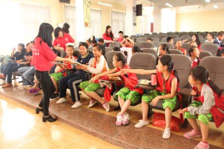 着,一众期待的联欢会拉开帷幕。动作夸张搞笑的舞蹈《PPAP》和《咋了爸爸》在大家的嬉笑声中更显欢快,实践队队员李玉洁的一首《年度之歌》深情款款、感动众人,手语表演《小幸运》温情缱绻、撩动人心。“你划我猜”和“萝卜蹲”的游戏笑点不断,竹坝的小朋友们都踊跃参加,喜获游戏奖品。最后实践队队员的大合唱《爱》将联欢会推向高潮。我们青春作伴,携手期待未来,让厦门大学外文学院和竹坝学校的情谊伴着幸运草和同心圆,在未来永远流转。