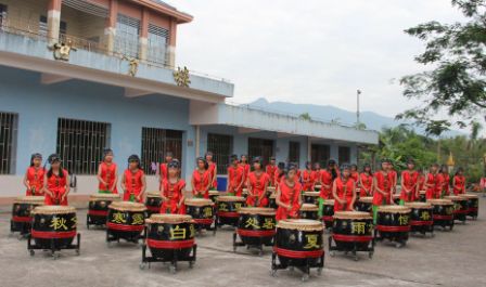 上午九时,实践队顺利到达竹坝学校。阔别了三个多月的竹坝,虽已花谢果落,但重新走过的每一寸地方都还是那么熟悉。回访的第一项内容是观看竹坝学校二十四节令鼓表演。相比之前,此次表演的队伍更为壮大,气势恢宏,铿锵有力的鼓声和鼓队队员朗朗的齐声诵读响彻一方天地,令人回味。