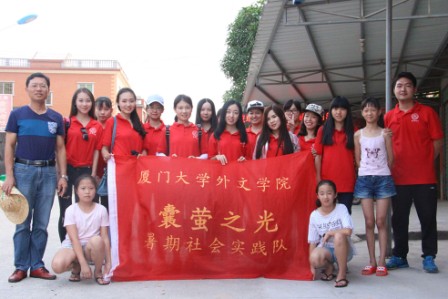 墙上温度计里的水银柱还在不断往上爬,不绝于耳的蝉鸣借热浪传来,仿佛永无休歇,厦门大学外文学院“囊萤之光”暑期社会实践队调研组成员们将录音笔、笔记本、问卷、驱蚊水等打包成饱满的行囊,走进了把大地炙烤得火热的阳光里。