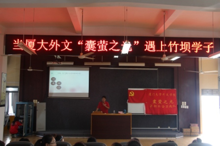 自党的十八大以来,习近平总书记提出“四进四信”等一系列重要讲话。为贯彻落实习近平总书记两会讲话精神,加深对“四进四信”重要性的认识,7月26日上午,厦门大学外文学院研究生“囊萤之光”暑期实践队支教组为竹坝学子带来了一堂关于“‘四进四信’,学习两会,共筑中国梦”的党团知识宣讲课。 此次宣讲由支教组优秀党员魏琛为孩子们主持讲解。课堂开始,魏老师便迅速切入主题,向大家讲述“四进四信”的内容。“四进”即进支部、进社团、进网络、进团课”。当讲到网络对中小学生的影响时,大家纷纷举手踊跃发言。