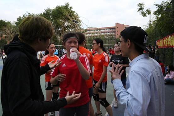 当天下午4点,外文学院与经济学院排球女队的半决赛正式开始。在起初落后的局面下,教练喊停商议战术,随后我队队员渐入佳境,再加上对方失误增多,姑娘们接连扳回几分。但由于比分已拉开较大,姑娘们难敌对方的强势猛攻,前两局均遗憾告负。虽以2:0无缘冠军赛,但姑娘们秉持着永不言弃的女排精神,互相鼓舞打气,迅速投身到季军赛的准备当中。