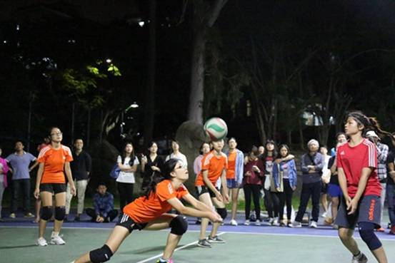经过两个小时的休息调整,晚上七点,排球女将们开始了与人文学院排球女队激烈的季军角逐赛。第一局中,姑娘们凭着默契的团队合作以及拼搏的女排精神,一路领先,但在最后的局点因缺乏比赛经验被遗憾反超。调整心态过后,女将们重回赛场,开始了第二局的竞技。每一次“好发”,每一次拦网,每一次扣杀,不仅引来场上观众的阵阵欢呼,更增加了姑娘们的热情与信心,外文姑娘们最终以25:17的大优势赢得了第二局。第三局开场后,姑娘们鼓舞彼此、放平心态,取得了7-6的反超局面。可惜在对方调整状态过后,姑娘们失误增多,比分差距再次被拉大。尽管如此,外文女排坚强拼搏的精神却从未改变,不服输的姑娘们连赢四球,一度将比分追成13-14。虽然姑娘们在最后的局点上憾失一球,然而一路走来,外文女将们团结协作、永不放弃的作风完美地诠释了女排精神的内涵。