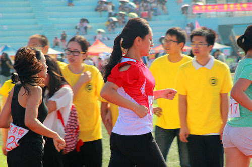 11月8日上午,在刚结束的本科生女子组3000米比赛的运动员中,一位穿着一袭红衣的姑娘,身材高挑,格外出众。她就是外文学院2015级日语专业新生杨潇艳,就是这样一个有着腼腆笑容的女孩,代表外文学院获得了本届校运会本科生女子组3000米第六名。