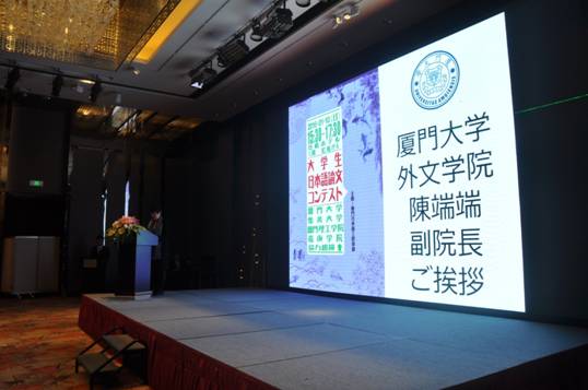 这一赛事自2013年开始以来,历经了四次。在此之前,一直是由厦门大学、集美大学、厦门理工学院轮流举办,本年度增加了厦门大学嘉庚学院。本次赛事由厦门日本商工俱乐部主办,得到了本次厦门日本商工俱乐部片寄俊夫的大力支持,亦得到了日本在外机构――广州总领事馆的关照,日本驻广州总领事馆?藤总领事莅临现场进行了发言,并参与了授奖。外文学院副院长陈端端教授作为厦门日语教师代表进行了发言,并介绍了这一赛事对于广大日本学习者的促进作用,表达了期望进一步延展下去的愿望。