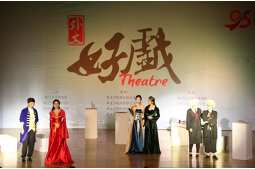 6月10日晚的科学艺术中心音乐厅灯光熠熠,热闹非凡。由厦门大学教务处、研究生院和外文学院共同主办,外文学院英语语言文学系、日语语言文学系、欧洲语言文学系、法语语言文学系及外文学院团委承办,厦门大学英文戏剧社、外文学社协办的“外文好戏”之日、德、俄专场“三国演艺”――《麦大劳的“野心”》《钦差大臣》《破瓮记》用120分钟精彩绝伦的表演为广大师生献上一场视听盛宴。