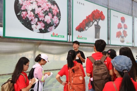 当被实践队的泰籍女博士用英文问起除杜鹃花种植外,是否还有其他的爱好,他想了想,用美式发音回答道:“Reading,basketball”,随后直接用英文为大家介绍公司杜鹃花的种植与经营状况。