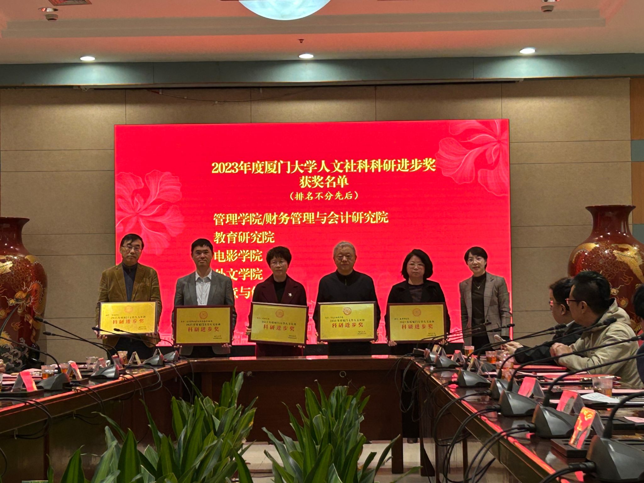 杨仁敬教授获“2023年度厦门大学获奖成果绩效奖”,辛志英教授荣获“2023年度厦门大学人文社科科研业绩突出个人奖”,为学院斩获荣誉。