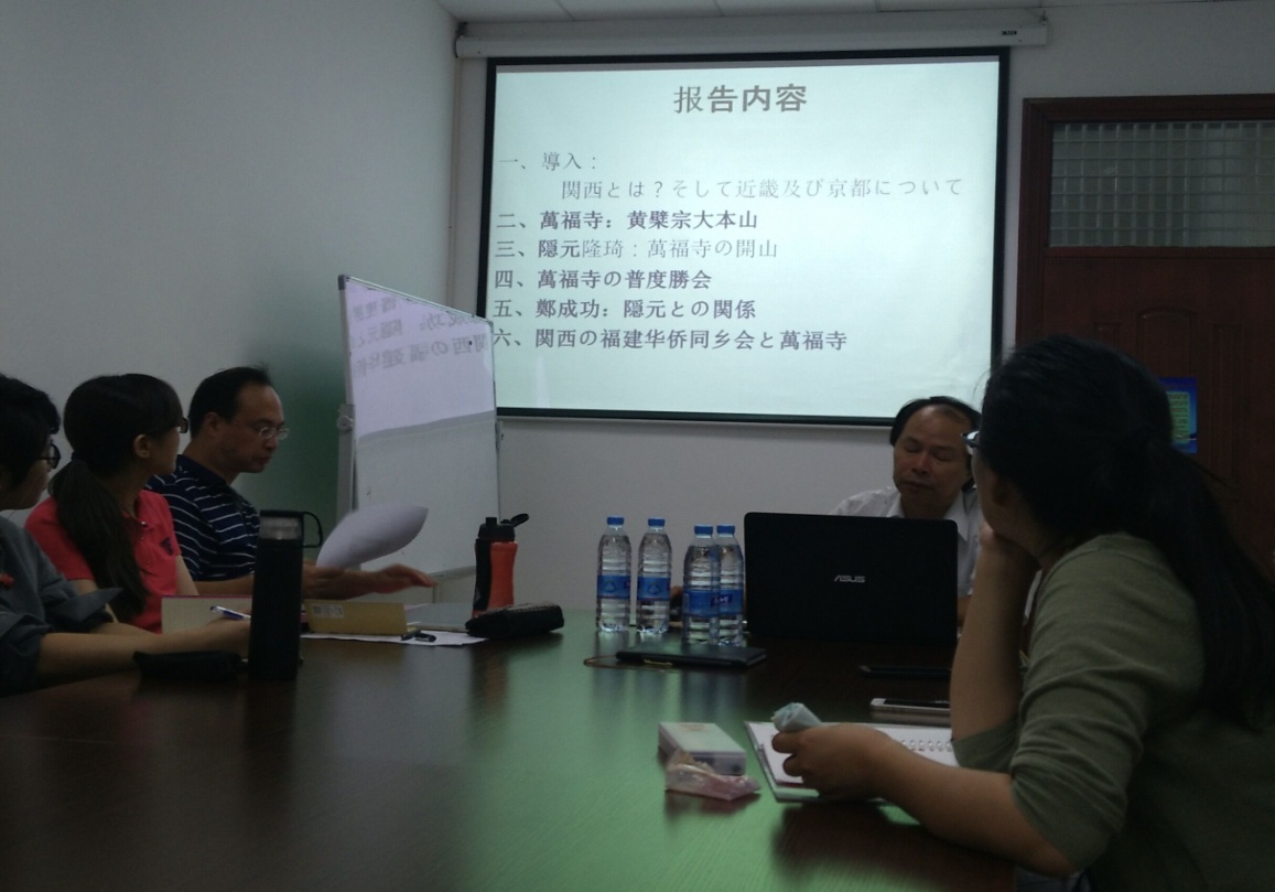 2016年9月22日晚,京都文教大学综合社会学部潘宏立教授在外文学院南光三209教室为外文学子带来了一场题为《京都的万福寺、隐元、郑成功――漫谈十七世纪中期日本与福建的历史文化交流》的讲座。日语系主任、博士生导师吴光辉教授主持了讲座。