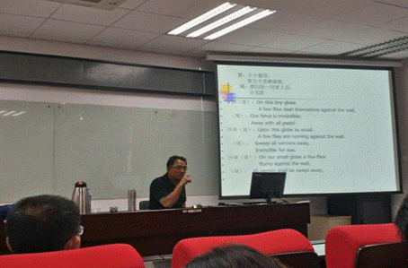 2016年10月17日,应厦门大学外文学院邀请,中国海洋大学任东升教授在外文学院院楼南光三313报告厅举行了一场题为“翻译与世界文学:国家的角色(Translation for World Literature: the State’s Role)”的学术讲座。讲座由外文学院英语系系主任杨士焯教授主持,参加此次讲座的还有外文学院多位教授、博士生、硕士生以及海外留学生。任东升教授的此次讲座深入浅出,从民族经典讲到世界经典,从古典作品讲到现代实际,解读了翻译活动,探讨了国家在民族文学走向世界过程中所扮演的角色,丰富了外院师生在世界文学形成发展方面的知识。